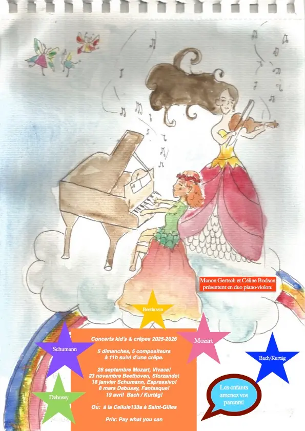 Concerts Kids & Crêpes 2025-2026 – Céline Bodson & Manon Gertsch présentent en duo violon et piano